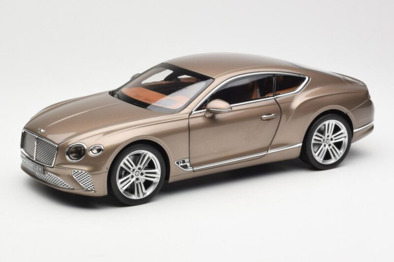 The Bentley Continental GT Dark Cashmere Metallic Norev 1:18 is crafted from Metalli. Die-cast zinc alloy body with detailed plastic parts, rubber tires, and high-quality paint finish. Die-cast models are known for their weight, durability, and realistic feel.
