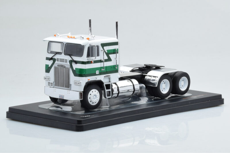 The Freightliner FLA Valkoinen Vihreä IXO 1:43 is crafted from Metalli. Die-cast zinc alloy body with detailed plastic parts, rubber tires, and high-quality paint finish. Die-cast models are known for their weight, durability, and realistic feel.