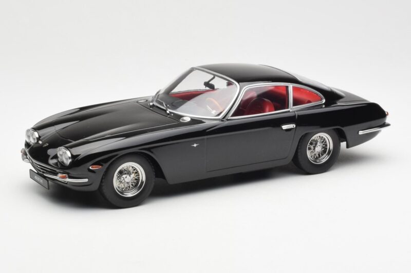 The Lamborghini 400 GT 2+2 Musta KK-Scale 1:18 is crafted from Metalli. Die-cast zinc alloy body with detailed plastic parts, rubber tires, and high-quality paint finish. Die-cast models are known for their weight, durability, and realistic feel.