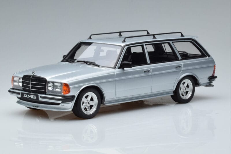 A 1:18 scale model measures approximately 25-28 cm (approximately 10-11 inches). The Mercedes 280 TE AMG S123 Hopea Otto 1:18 is perfect for display in a glass cabinet or on a shelf.