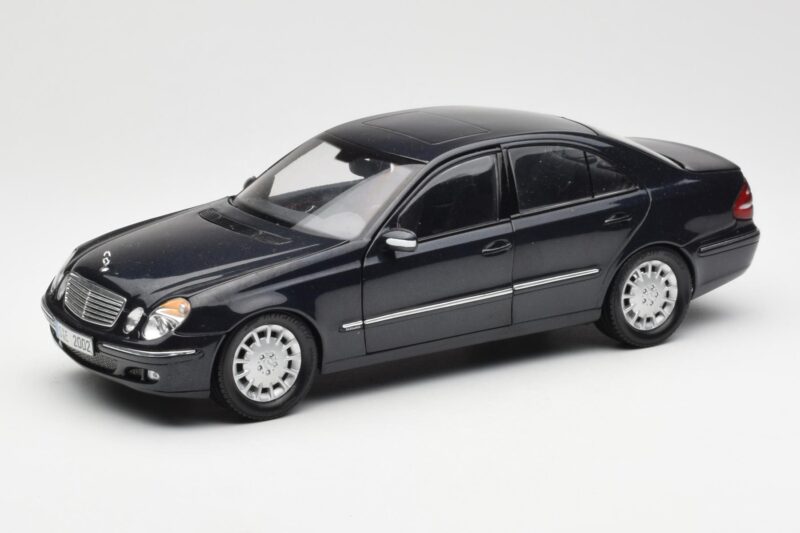 The Mercedes E-Class W211 Sininen Metallic Kyosho 1:18 is crafted from Metalli. Die-cast zinc alloy body with detailed plastic parts, rubber tires, and high-quality paint finish. Die-cast models are known for their weight, durability, and realistic feel.