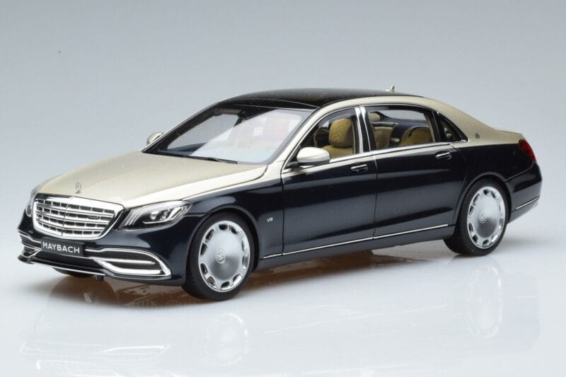 The Mercedes Maybach S650 X222 Hopeansininen Norev 1:18 is crafted from Metalli. Die-cast zinc alloy body with detailed plastic parts, rubber tires, and high-quality paint finish. Die-cast models are known for their weight, durability, and realistic feel.