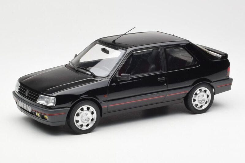 The Peugeot 309 GTi Musta Norev 1:18 is crafted from Metalli. Die-cast zinc alloy body with detailed plastic parts, rubber tires, and high-quality paint finish. Die-cast models are known for their weight, durability, and realistic feel.