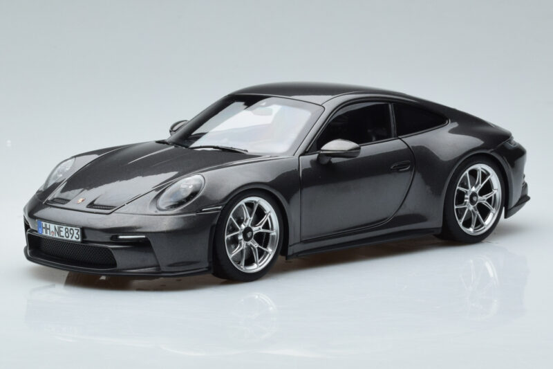The Porsche 911 992 GT3 Touring Package Harmaa Norev 1:18 is crafted from Metalli. Die-cast zinc alloy body with detailed plastic parts, rubber tires, and high-quality paint finish. Die-cast models are known for their weight, durability, and realistic feel.