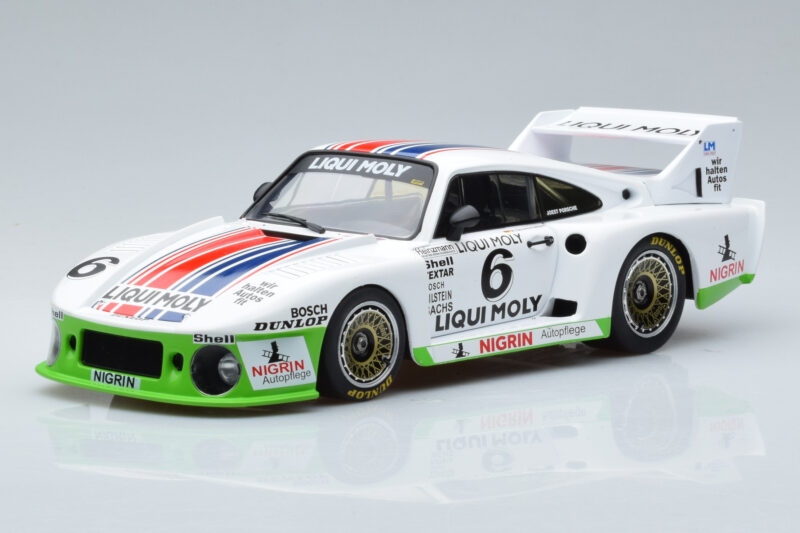 The Porsche 935J #6 Liqui Moly Spa-Francorchamps DRM 1980 MCG 1:18 is crafted from Metalli. Die-cast zinc alloy body with detailed plastic parts, rubber tires, and high-quality paint finish. Die-cast models are known for their weight, durability, and realistic feel.