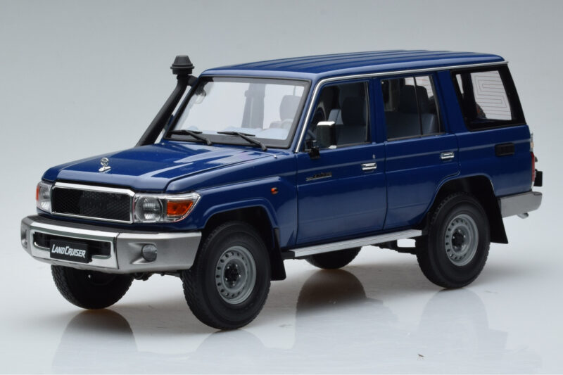 The Toyota Land Cruiser J76 Sininen Almost Real 1:18 is crafted from Metalli. Die-cast zinc alloy body with detailed plastic parts, rubber tires, and high-quality paint finish. Die-cast models are known for their weight, durability, and realistic feel.