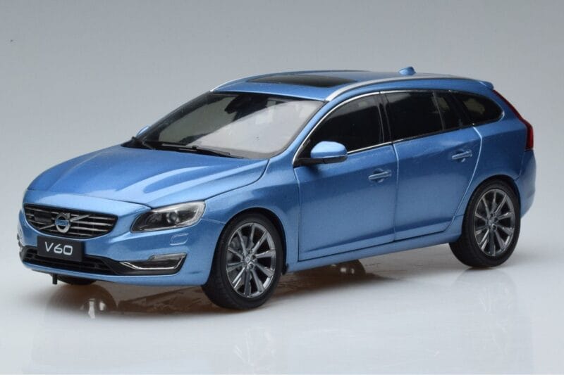 The Volvo V60 D3 Power Sininen FAW 1:18 is crafted from Metalli. Die-cast zinc alloy body with detailed plastic parts, rubber tires, and high-quality paint finish. Die-cast models are known for their weight, durability, and realistic feel.